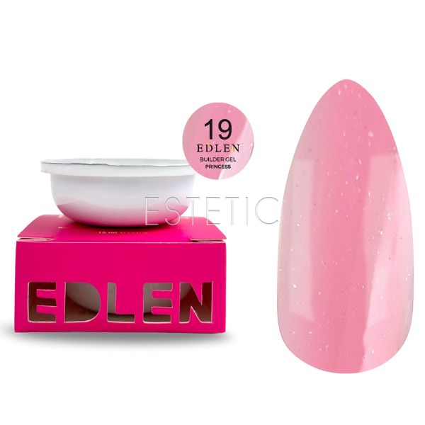 Гель для ногтей EDLEN Builder gel 19 Princess, Сменный картридж, ярко-розовый с шиммером, 15 мл