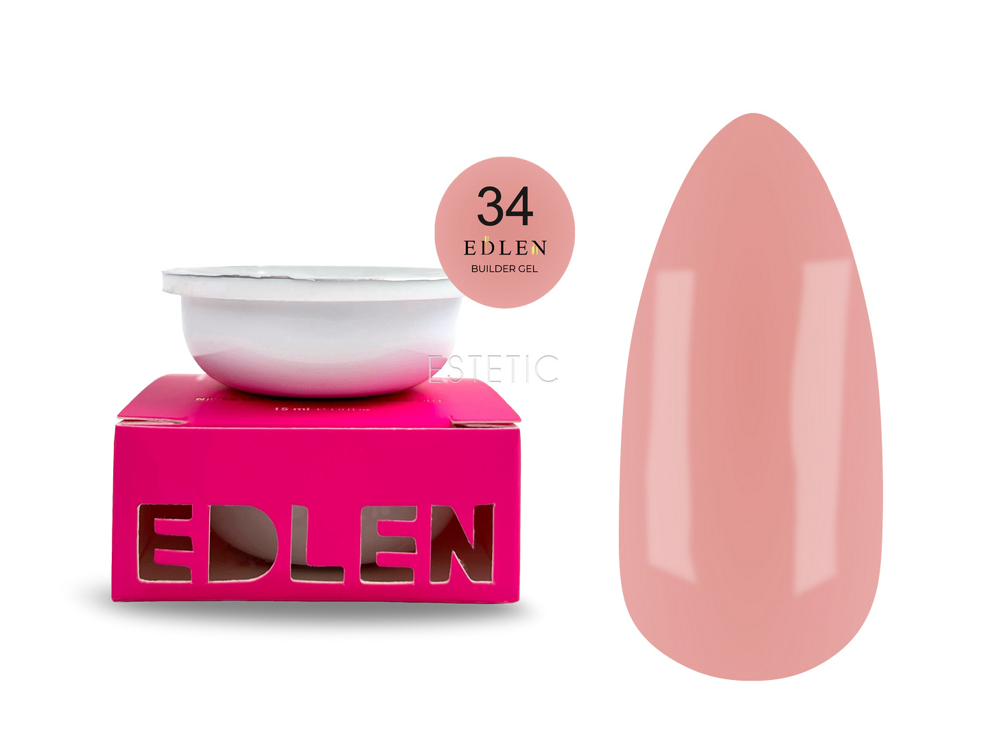 Гель для ногтей EDLEN Builder gel 34 Office, сменный картридж, бежево-розовый нюд, 15 мл