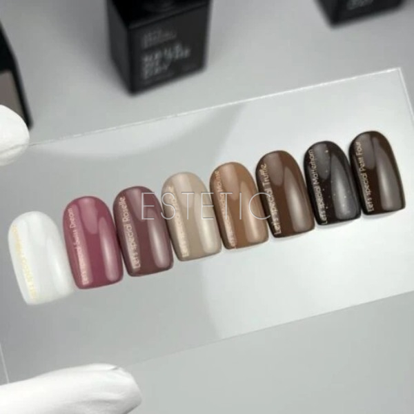 NAILS OF THE DAY Let's special — это инновационный гель-лак, отличающийся особой нано формулой и использованием пигмента высочайшего европейского качества. Этот продукт украинского производства способен обеспечить насыщенное темнокоричневое покрытие ногтевой пластины всего в один легкий слой. Благодаря своей средней плотности он равномерно наносится, идеально подходит для профессионалов и любителей и гарантирует блестящий маникюр до 4-х недель.