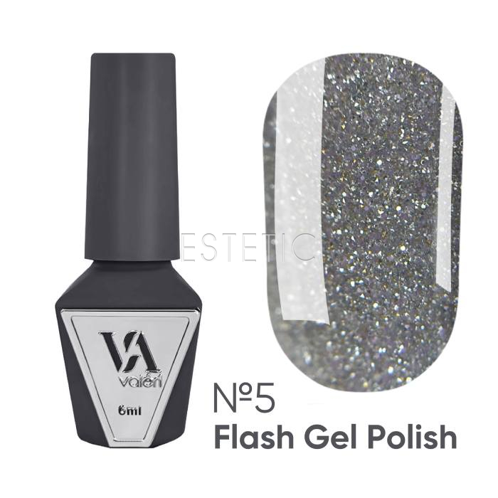 Гель лак Valeri Flash 05 светоотражающий теплый серебряный с блестками шампань, 6 мл