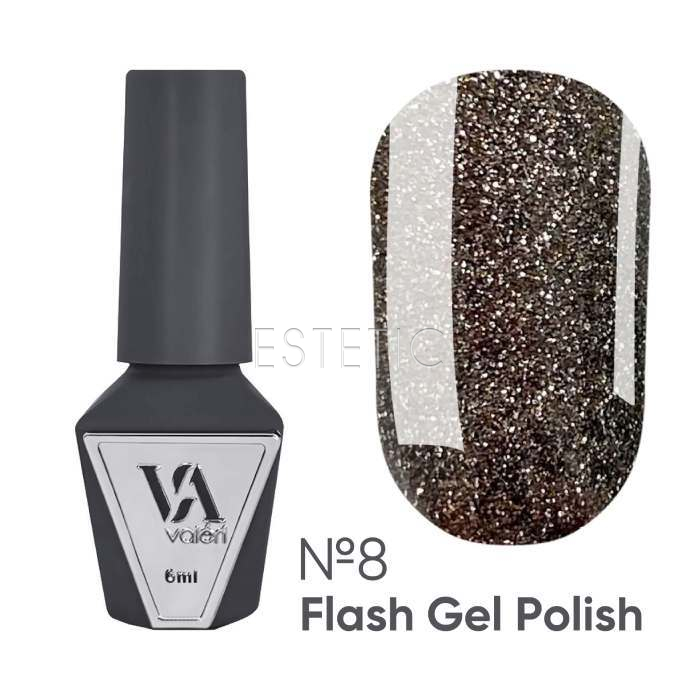 Гель лак Valeri Flash 08 светоотражающий серебристо-бежевый с блестками шампань, 6 мл