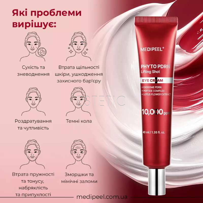 MEDIPEEL Phyto Exosome PDRN Lifting Shot Eye Cream – это высокоэффективное средство, объединяющее передовые технологии омоложения и натуральные ингредиенты для комплексного ухода за деликатной зоной вокруг глаз.