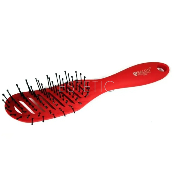 Щетка для волос Salon PR 18045 изогнутая продувная карбон, красная