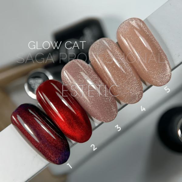 GLOW CAT - це колекція гель-лаків котяче око з кришталевим ефектом. У складі продукту - металева пудра з голографічним сяйвом, яка дозволяє грати відблисками за допомогою магнітів. Також, у гель-лаку щільна консистенція, через що з ним неймовірно зручно працювати, оскільки він не тече і не пече у лампі. Продукт відмінно носитися без сколів та тріщин, а також не вимагає підкладки при нанесенні.