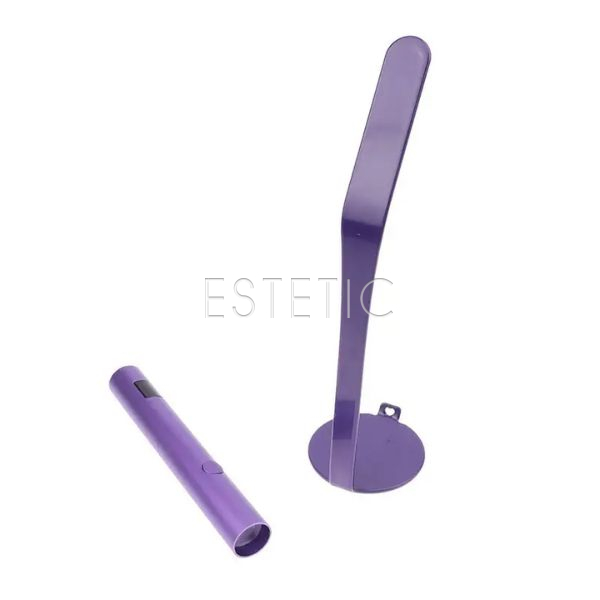 LED міні-лампа Led 3 (3 Вт, фіолетова) — незамінний мобільний інструмент для точкового манікюру. Завдяки вбудованому акумулятору (230 мАг) і магнітній підставці, ця металева лампа забезпечує повну свободу дій, ідеально підходить для просушування верхніх форм, гелевих тіпсів, декору та надійного кріплення страз.